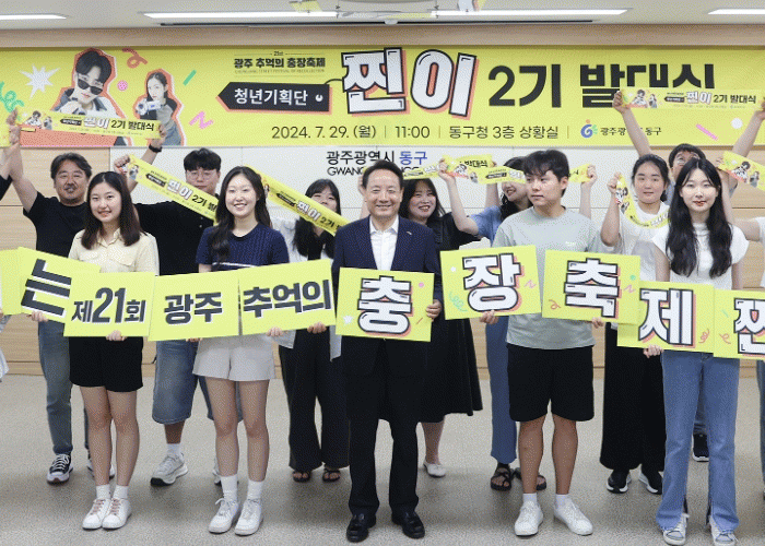 임택 동구청장은 “매년 10월 가을이 되면 저물어 가는 계절이라 생각하기 쉽지만 충장축제가 개최되는 10월에는 청년기획단 ‘찐이‘로 인해 젊은 청춘의 비전이 새겨지는 계절이 될 것”이라면서 “동구 문화의 미래이자 충장축제 동안 물심양면으로 활동해 줄 찐이 활동가 여러분에게 마음 깊이 감사와 응원을 전한다”고 말했다.