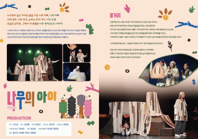 먼저 ‘국립아시아문화전당재단’과 공동 기획한 ‘나무의 아이’는 한국 설화 목도령과 대홍수를 모티브로 남과 다른 아빠를 가진 아이가 세상을 이해하고 배우게 되는 이야기를 음악과 함께 풀어가는 공연으로 8월 20일부터 24일까지 진행된다.