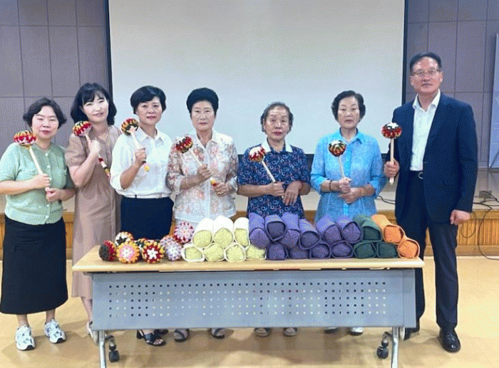 이날 전달된 물품은 지난 17일 행복충전 우수봉사자 역량강화교육에 참여한 자원봉사자들이 산업폐기물로 분류되어 버려지는 양말목을 활용해 사랑과 정성을 담아 만든 것이다.