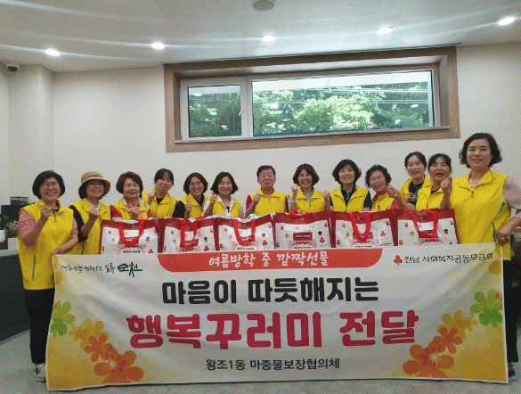 왕조1동 김미란 동장은 “무더위가 기승을 부리는 날씨에도 나눔을 위해 구슬땀을 흘려준 마중물보장협의체 위원들께 감사드린다”며, “앞으로도 적극적인 현장행정을 통해 지역사회 복지지원에 최선을 다하겠다”고 말했다.
