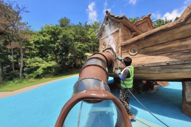 모래 소독뿐만 아니라 아이들이 자주 이용하는 놀이기구인 그네, 미끄럼틀 역시 소독을 진행해 놀이 환경의 안전성을 확보하고 있다.
