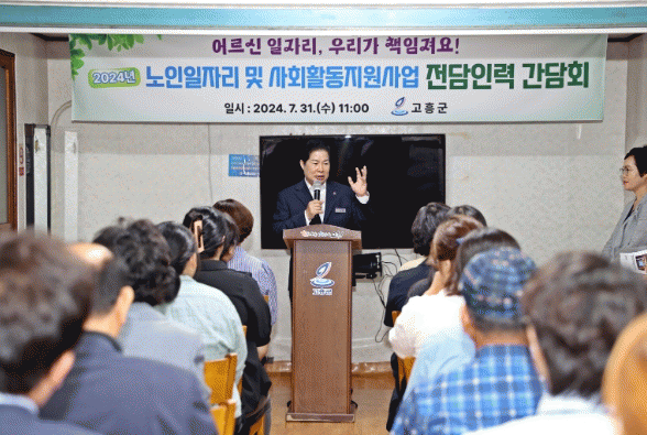 이번 간담회는 공영민 군수를 비롯한 고흥군 관계자, 노인일자리 3개 수행기관(고흥군노인복지관, 대한노인회 고흥군지회, 고흥시니어클럽) 대표 및 전담 인력 31명 등 42여 명이 참석해 노인일자리사업 성과와 문제점을 공유하고 전담 인력의 역할과 책임을 재정립하는 시간을 가졌다.