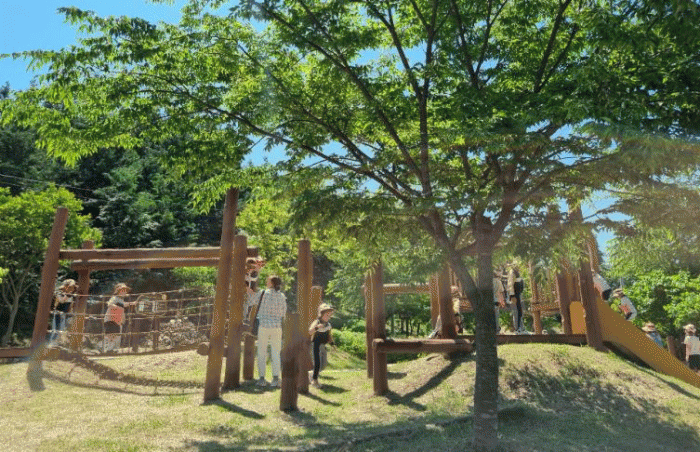 군은 2016년 환경부 사업비를 투입해 이곳에 나무 놀이기구 놀이터와 미로 화단 등을 만들었다.