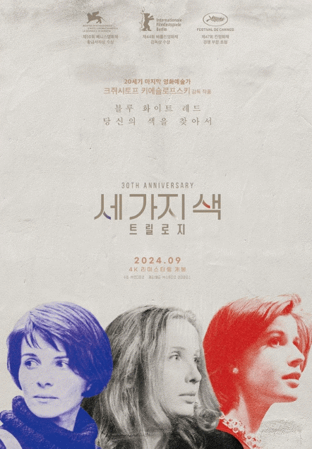 거장 크쥐시토프 키에슬로프스키의 전 세계 영화 팬들을 사로잡은 걸작 '세 가지 색' 트릴로지 4K 리마스터링 버전은 9월 4일부터 국내 릴레이 개봉, 전국 극장에서 만날 수 있다.
