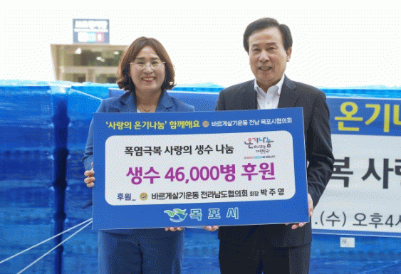 이날 행사는 제16대 바르게살기운동 전라남도협의회장으로 취임한 박주영 회장의 생수 46,000병 기탁으로 이루어졌으며, 시·도 바르게살기운동 임원 및 각 동 바르게살기위원장이 참석해 진행됐다.