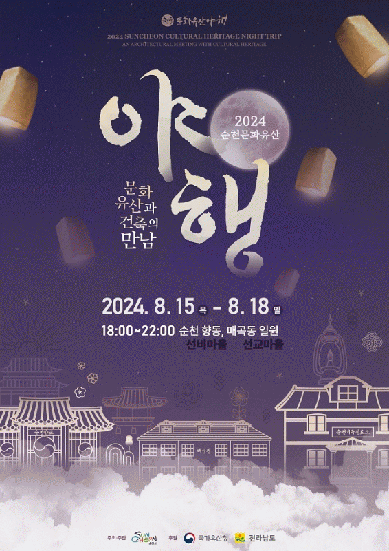 2024년 순천문화유산야행은 ‘문화유산과 건축의 만남’이라는 주제로 향동과 매곡동 일원에서 개최된다.