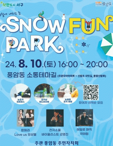 서구는 오는 10일 풍암동 소통테마길에서 한여름에 눈이 내리는 상상 속 세상을 생동감 있게 재현하는 ‘스노우 펀 파크(snow fun park)’ 행사를 개최한다.
