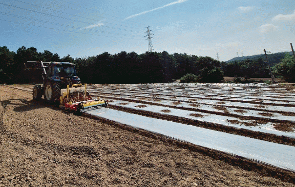 특히 배토-로터리 형성-노지 평단화-토양 훈증소독-비닐 피복 및 커팅 등 모든 작업이 기계 처리가 가능해 일반적인 수작업에 비해 작업 일수와 노동력을 3분의 1 수준으로 줄일 수 있다.