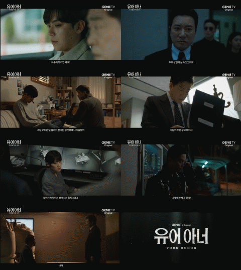 지니 TV 오리지널 드라마 ‘유어 아너’(크리에이터 표민수, 극본 김재환, 연출 유종선, 기획 KT스튜디오지니, 제작 ㈜테이크원스튜디오 ㈜몬스터컴퍼니)는 자식을 위해 괴물이 되기로 한 두 아버지의 부성 본능 대치극이다.
