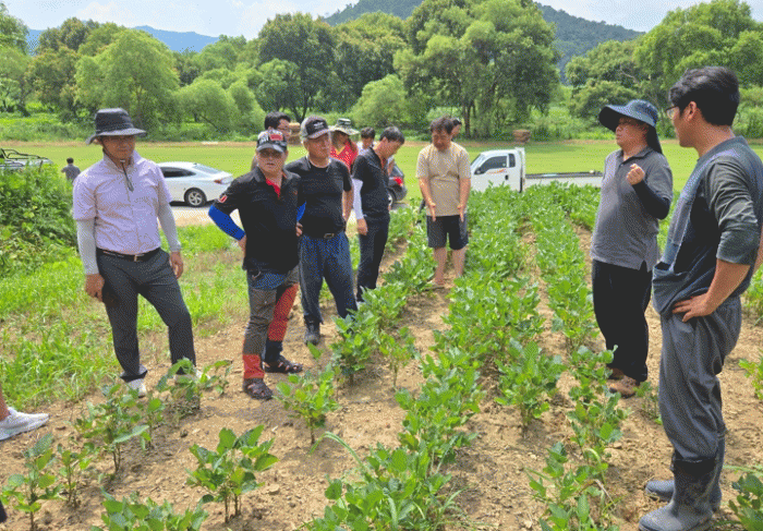 이날 교육에서 정 연구사와 이 지도사는 콩 종자 선정의 중요성부터 콩의 생리적 특성에 맞는 적절한 시비, 농약살포, 배수관리 방법, 수확 및 건조에 이르는 현장 경함과 노하우를 전수했다.