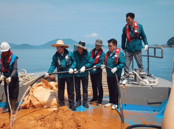 이에 따라 고흥군은 지난 10일 상황팀을 조성하고 고흥군지도선(203호)과 정화선(청정고흥호)을 이용하여 거금도 오천항 인근 적조 관측 현장에 4톤의 황토를 뿌리는 등 적조 확산을 막기 위한 선제적 대응에 총력을 다하고 있다.