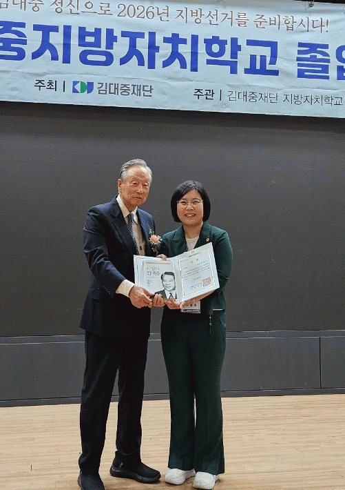박경미 의원은 이번 교육과정에서 뛰어난 학업 성취도와 적극적인 참여를 보여주며, 지방자치에 대한 이해가 깊은 점이 높이 평가되어 우수상 수상자로 선정됐다.