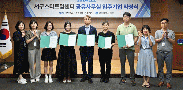 이들은 내년 5월까지 공유사무실을 무상으로 사용하며 상품?서비스 고도화 등 창업활동에 전념할 예정이다. 공유사무실은 온라인 서비스 및 IT기술 기반 기업, 1인 창조기업 등에 최적화된 시설을 갖추고 있으며 입주기업들은 센터 내 창작 스튜디오, 회의실, 북카페 등도 무료로 사용할 수 있다. 서구는 또 창업 브랜드 마케팅 교육 및 기업 맞춤형 전문가 멘토링, 청년창업가 간 네트워크 구축 등을 지원할 예정이다.