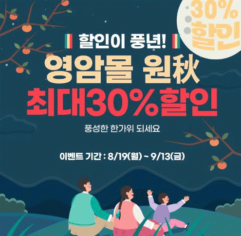8/19일부터 추석 연휴 전날인 9/13일까지 진행되는 이번 기획전은, 영암 우수 농특산물을 전국 소비자에게 저렴한 가격에 전하는 대대적 할인 이벤트.