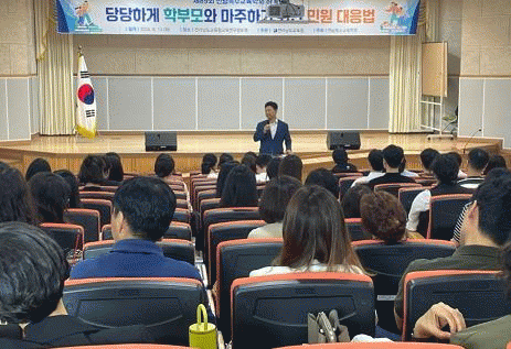 이 자리에는 군산동초 김성효 교감이 ‘당당하게 학부모와 마주하기 위한 민원 대응법’을 주제로 교사-학부모 간 효과적 소통 노하우를 전했고, 몽탄초 강혜영 교사는 장애학생 행동중재 사례와 함께 효과적인 지원 방안을 논의하는 시간도 가졌다.