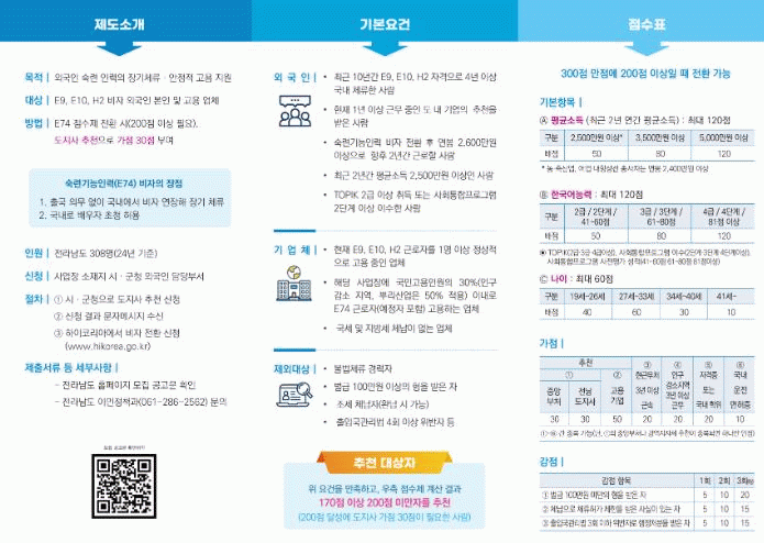 전남도는 8월 중 개소하는 전남 이민·외국인 종합지원센터에서 숙련기능인력(E-7-4)과 지역특화비자(F-2-R·F-4-R)로의 전환을 지원할 예정이다.
