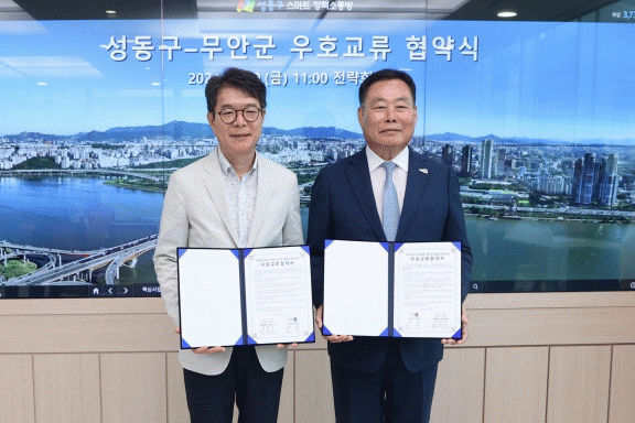 정원오 성동구청장은 “오늘 협약식을 계기로 성동구와 무안군이 상호 발전을 위한 동반자가 된 만큼 미래 도약을 위한 소중한 기회로 삼아 양 도시 발전에 기여할 수 있기를 바란다”고 말했다.
