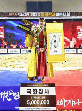 이세미 선수는 결승전에서 팀 동료인 엄하진 선수와 맞붙어 승리하며 데뷔 5년 만에 첫 국화장사에 등극했다.