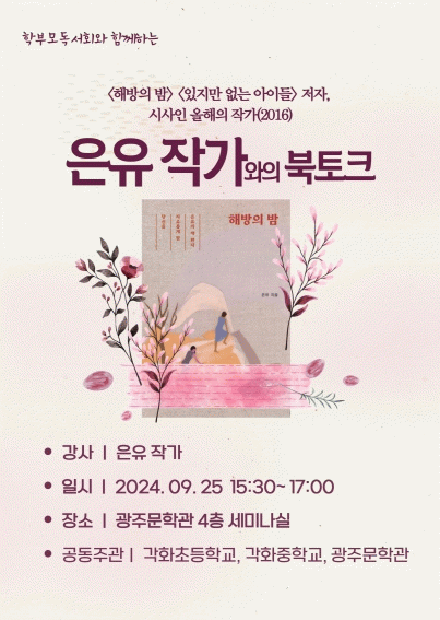 이날 강연은 각화초·중학교 학부모독서회, 학생, 시민을 대상으로 오후 3시 30분 시작해 작가의 말, 사전 질문을 중심으로 ‘작가와의 대화’ 방식으로 진행된다.