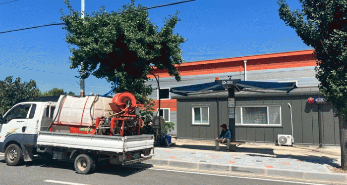 35도를 웃도는 불볕더위가 기승을 부린 19일 낮도 마찬가지. 기온이 오르자 전 씨는 커다란 물통이 실린 1톤 트럭을 몰고 집을 나섰다.