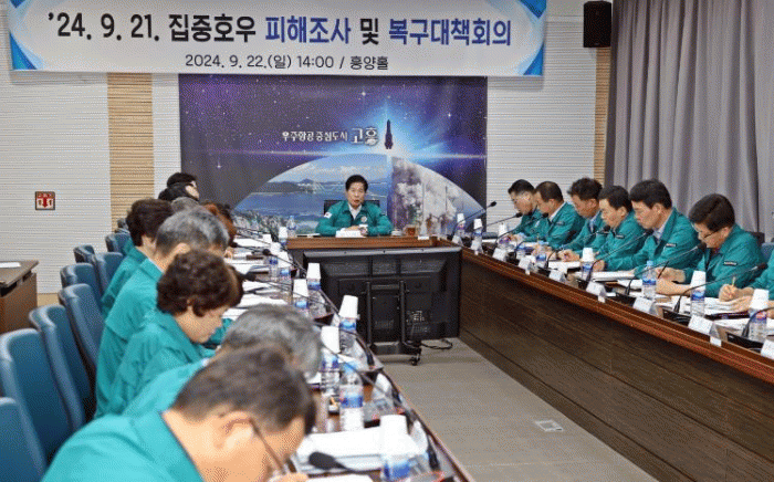 고흥군은 집중 호우에 대비해 지난 20일 상황 판단 회의에 이어 재난안전대책 본부를 가동하고 직원 비상근무를 실시했으며, 특히 지난 21일 늦은 오후에는 공영민 군수가 직접 주요 피해 현장(과역, 포두면 등) 점검하는 등 피해 최소화를 위해 총력전을 펼쳤다.