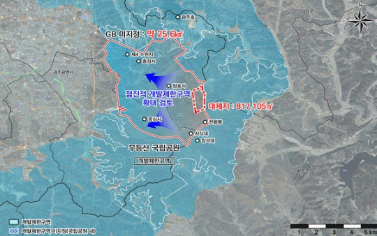 하지만 산지 81만㎡(25%)는 대체 그린벨트를 지정해야만 개발할 수 있다.