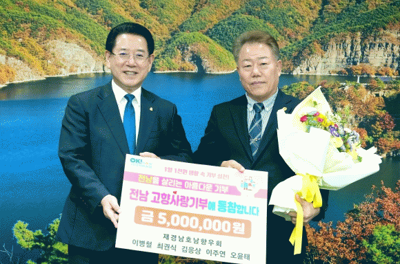 이병철 회장은 기탁식에서 “아직 더위가 가시지 않은 9월, 전남도에서 고향사랑 기금사업을 선정하기 위해 부단히 애쓰고 있다는 소식을 들었다”며 “전남도가 역점 추진하는 전남 사랑애 서포터즈 모집과 365 고향사랑기부 캠페인, 국립의과대학 유치 등 도정 현안에 재경남호남향우회가 적극 협력할 것”이라고 말했다.