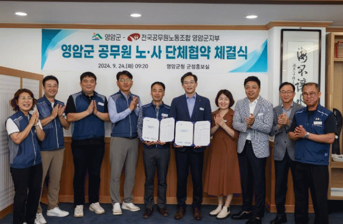 이날 협약식에서 우승희 영암군수와 이대운 영암군지부장은 직원 노동조건 개선, 합리적인 인사 운영, 공직사회의 근본 개혁 등이 담긴 단체협약서에 서명했다.