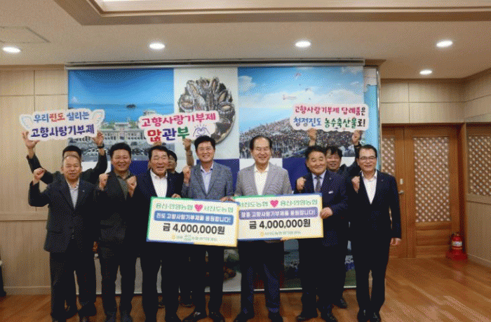 김희수 진도군수는 “장흥 용산 · 안양농협 조합장님을 비롯한 직원분들께서 우리지역을 위해 사랑하는 마음을 담아 고향사랑기부제에 동참해 주셔서 진심으로감사드리며, 기부금은 지역의 활력을 되찾기 위해 소중하게 사용하겠다”고 말했다.
