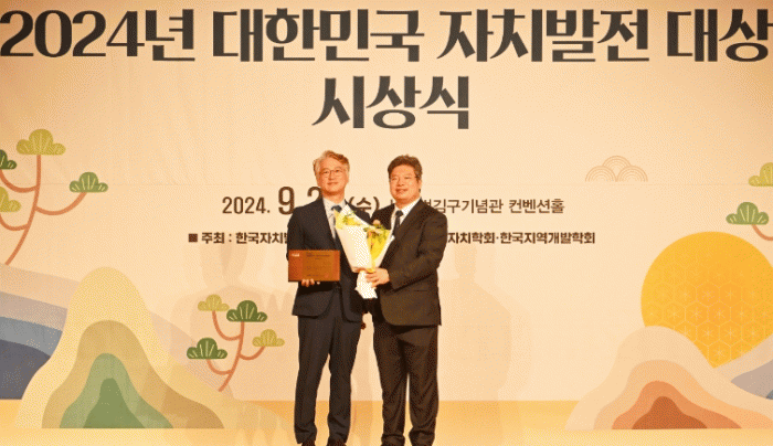 ‘대한민국 자치발전 대상’은 행정안전부 소관 한국자치발전연구원이 주최하고 한국지방자치학회, 한국지역개발학회가 후원하는 상으로 지역발전 및 행정 분야에서 혁신적 성과를 거둔 지방자치단체, 지방의회의원 등을 선정해 시상하고 있다.