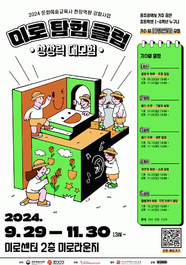 ‘2024 문화예술교육사 현장 역량강화 사업’ 일환으로 추진하는 이번 프로그램은 광주광역시와 문화체육관광부가 주최하고 광주문화예술교육지원센터가 주관하며, 한국문화예술교육진흥원과 협력해 미로센터에서 운영된다.