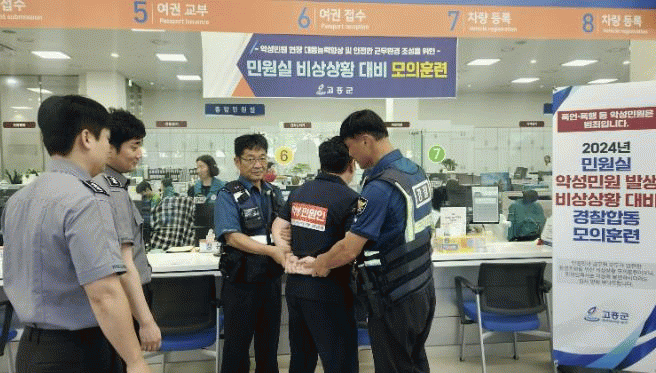 군 관계자는 “민원인의 폭언·폭행으로 민원 담당 공무원이 직무 스트레스와 위험에 자주 노출되고 있다”며, “이번 훈련을 통해 민원인과 공무원 모두가 안전한 민원실 환경을 조성하고, 품격 높은 민원 서비스를 제공할 수 있도록 최선을 다하겠다”고 말했다.