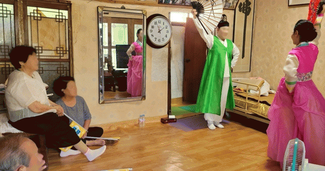 프로그램은 1인 가구 대상자의 집에 지역 예술가들이 직접 방문해 전통무용, 트로트 보컬 등 소공연을 선보이며 함께 담소를 나누는 형식으로 진행 중이다.