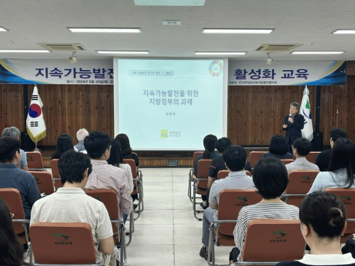 전라남도지속가능발전협의회 주관으로 진행된 이번 교육은 김병완 광주대학교 교수가 '지속가능발전을 위한 지방정부의 과제'를 주제로 강연했다.