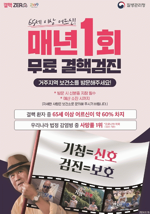 이에 시는 10 부터 12월간 시 누리집과 버스광고, 홍보물 등 다양한 수단을 활용해 ‘65세 이상 대상 결핵 검진’을 독려할 계획이다.