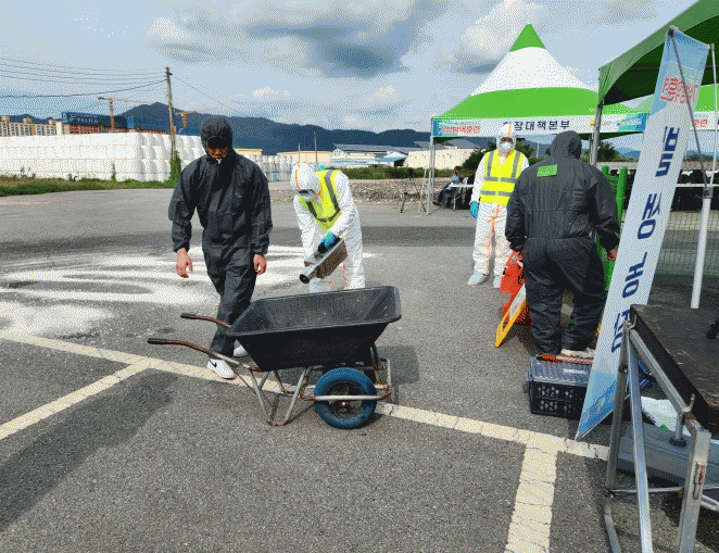 강진군은 초기에 정확하고 신속한 대응을 위해 긴급행동지침에 따른 인력과 장비 동원계획, 거점소독시설 운영 및 통제초소 설치 등에 관한 절차를 점검했다.