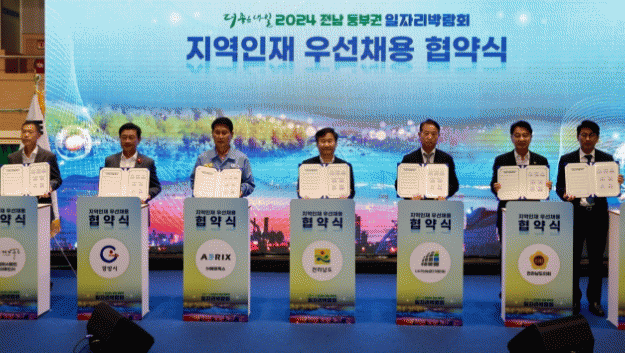 한편, 이날 협약식은 지역인재들을 우선 채용하겠다는 협약체계를 구축하여 도민들의 일자리 안전망을 강화하기 위한 것으로 광양시 소재 ㈜에어릭스와 고흥군 소재 어업법인 케이푸드(주)가 참여했다.
