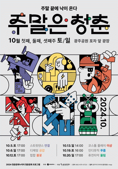 광주광역시는 오는 10월 5일부터 3주간 매주 토·일요일 오후 광주공원 앞 노상주차장 광장에서 ‘청춘문화누리터’를 운영한다.