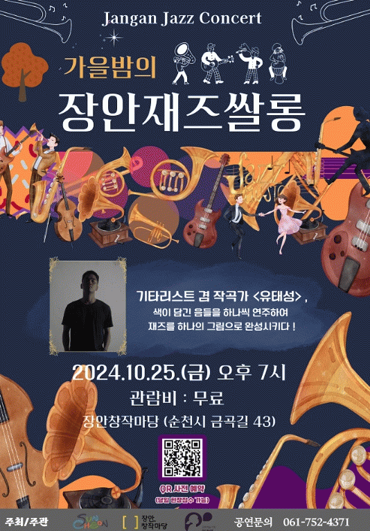‘장안 재즈 쌀롱’은 사전 선착순 및 현장 접수로 누구나 무료로 관람할 수 있으며, 자세한 사항은 장안창작마당 블로그를 통해 확인할 수 있다.