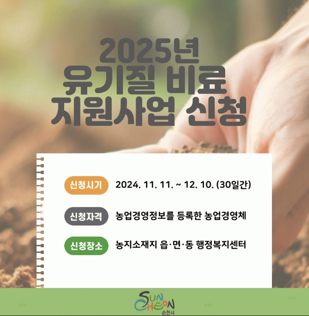 기타 자세한 사항은 순천시 친환경농업과로 문의하면 된다.