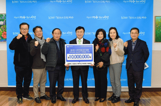 여수시에 따르면 이번 기부는 LA한인축제 참가로 얻게 된 성과를 지역 사회와 나누고 싶다는 업체 대표들의 자발적인 뜻에 따라 마련됐으며, 각자 생산한 품질 높은 갓김치, 멸치, 고등어 등 600상자를 전달했다.