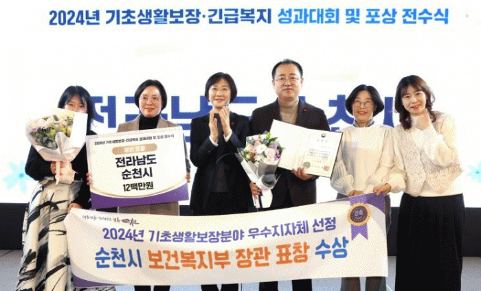순천시는 생활이 어려운 시민을 신속하게 수급자로 선정하고, 변동사항을 적시에 반영하여 철저한 수급자 관리를 진행한 점과, 긴급복지 지원업무를 적극적으로 추진하여 복지 사각지대 해소에 기여한 공로를 인정받았다.