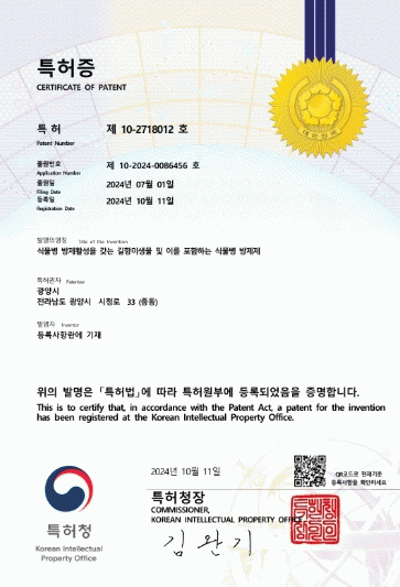 광양시는 작물 생육 촉진 효과와 우수한 생물학적 방제 기능을 동시에 가진 복합 기능성 균주(식물병방제제)로 인정받아 특허공보 된 ‘지와이균’의 산업화를 도모하기 위해 지난 10월 18일 특허권 통상실시 공고를 했다.