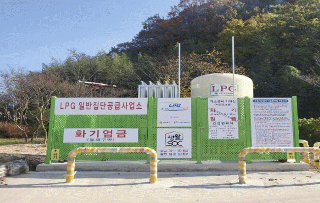LPG 배관망 구축사업은 마을 중심부에 LPG 저장탱크를 설치하고 각 세대에 지하배관으로 연결해 집단으로 가스를 공급한다. 마을에서 멀리 떨어진 가구는 개별탱크를 설치해 연료를 공급한다.