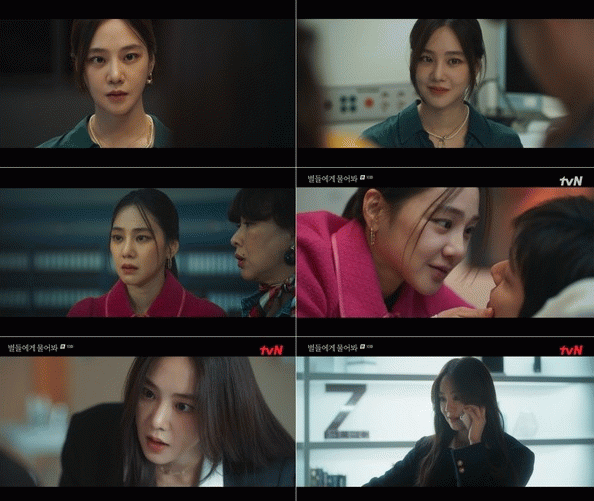 지난 1일(토), 2일(일)에 방송된 tvN 토일드라마 ‘별들에게 물어봐’(극본 서숙향, 연출 박신우, 기획 스튜디오드래곤, 제작 키이스트·MYM엔터테인먼트) 9, 10회에서 한지은은 약혼남에게 배신당한 캐릭터의 참담한 심정을 3단 연기 변주로 그려내며 극에 흥미를 배가시켰다.