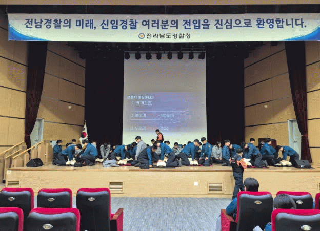이번 교육은 전남경찰청 소속 신임경찰 102명이 참여했고 기도폐쇄 및 심폐소생술 등 응급처치 내용을 중심으로 진행됐다.