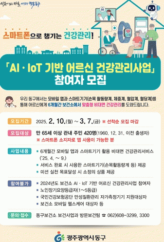 임택 동구청장은 “스마트 기술을 활용한 AI·IoT 기반 어르신 건강관리사업을 올해로 3년째 추진 중이다”면서 “어르신들 스스로 자가 건강관리 역량을 강화하여 건강한 노후를 보낼 수 있도록 최선을 다하겠다”고 말했다.