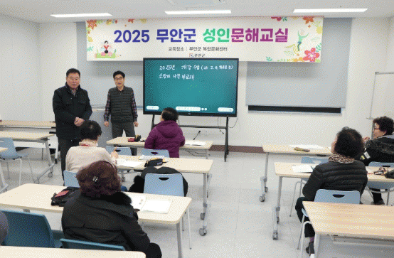 군은 올해 성인문해교실을 8개 교실(무안읍, 일로읍, 삼향읍, 몽탄면, 청계면, 현경면)에서 3월까지 차례대로 개강 운영할 계획이며, 총수강생은 140여 명이다.
