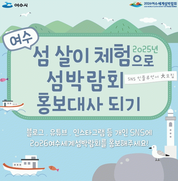 보다 자세한 내용은 여수시청 누리집 고시·공고에서 확인하거나 섬박람회지원과 섬미래정책팀으로 문의하면 된다.
