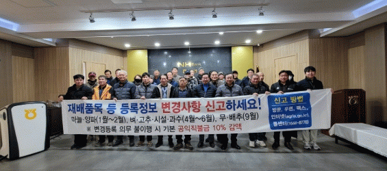 2월 3일에는 농관원과 양파·마늘 자조금 단체와 협력하여 농업경영체 변경 신고 정착을 위해 관산농협에서 생산 농가를 대상으로 농업인 교육을 추진했다.